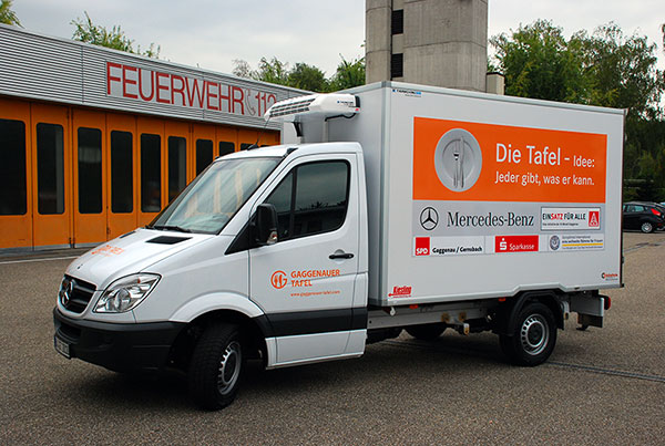 Mit diesem diesem Kühlwagen werden täglich Waren von den Lieferanten, welche bereit sind die Tafel zu versorgen abgeholt.