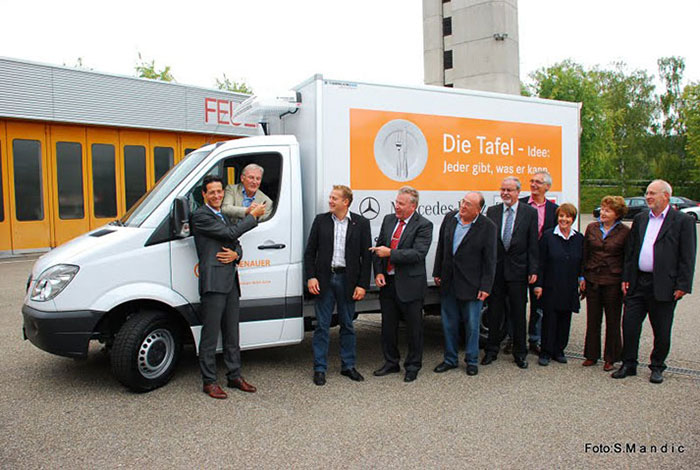 „Wir unterstützen eine gute Idee“, heißt es beim Tafelprogramm der Daimler AG. Dieses Tafel-Sponsoringangebot bietet den Tafeln speziell für deren Arbeit konzipierte Mercedes-Benz Fahrzeuge an. Die Gaggenauer Tafel entschied sich für den Sprinter 311 CDI mit Kühlkoffer Cooler Flitzer. Dabei übernimmt Mercedes-Benz einen großen Anteil des Fahrzeuglistenpreises. Mercedes-Benz sorgte sich außerdem um einen reibungslosen Ablauf der Produktion sowie um die fachgerechte Beklebung des Fahrzeugs mit dem Sponsoren-Logos.