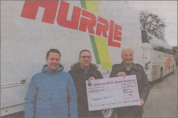 "Seit Jahren besorgt die Hurrle Spezialtransport GmbH die Abfallbeseitigung der Tafel. Wir sind den beiden Geschäftsführern, Ferdinand und Ingo Hurrle dafür zu großem Dank verpflichtet", sagte Josef Hartmann, Leiter der Gaggenauer Tafel: Mit der Scheckübergabe von 7.000 Euro beweise das Unternehmen seine Verbundenheit zur Tafel. Deren Einzugsgebiet reicht von Bischweier bis Forbach und Loffenau. Nach Auskunft der Tafel übernimmt die Firma Hurrle die Abfallbeseitigung für die Tafel und spendet ihr den dafür gezahlten Betrag.