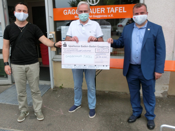 Am Sonntag endete für Muslime die Fastenzeit Ramadan. Üblicherweise wird deren Abschluss des Fastens mit einem großen Fest gefeiert, an dem sich Familien und Freunde zum gemeinsamen Essen treffen. Aufgrund der Corona-Einschränkungen war dies nicht möglich. Der Vorstand des Türkischen Schulelternvereins Gaggenau initiierte bei seinen 120 Mitgliedern und Freunden eine Spenden-Aktion für die Gaggenauer Tafel, berichtet Ulrike Tobisch-Kohlbecker. "Die Spendenbereitschaft war sehr groß und wir schätzen Ihre Arbeit", versicherten Vorsitzender Mahmut Pervaneli und sein Stellvertreter Baris Öztürk. Sie überreichten Josef Hartmann, dem Leiter der Gaggenauer Tafel, einen Scheck in Höhe von 1.520 Euro. Dieser bedankte sich mit großer Freude im Namen der Tafelkunden. "Wir können diese Spende derzeit sehr gut gebrauchen, denn es kommen jetzt in Corona-Zeiten mehr Menschen zum Tafelladen." Die beiden Vorsitzenden nutzten die Gelegenheit, um die Einrichtungen der Tafel, die für die Region von Bischweier bis Forbach und Loffenau zuständig ist, zu besichtigen.